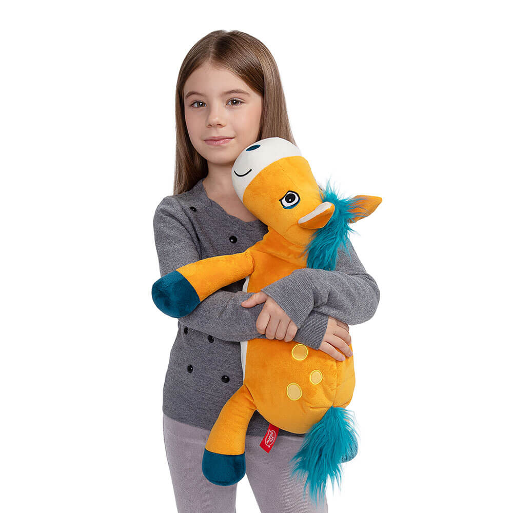 Сладкий подарок Лошадь Янтарь сшита из мягкого софта оранжевого цвета. У нее синий хвостик и ножки. Внутри мягкой игрушки потайной карман на молнии со сладким подарком. Набор конфет 600г Стандарт.